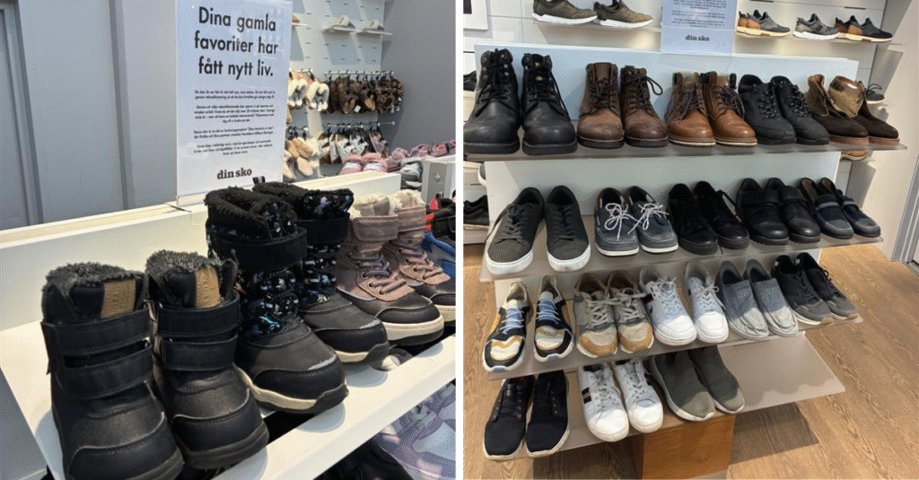 Projektet Ökat återbruk av skor, lett av IVL Svenska Miljöinstitutet i samarbete med Wargön Innovation syftar till att revolutionera skobranschen genom att utveckla effektiva modeller för återbruk och återvinning av skor. Projektet utvecklar också ett ramverk för effektiv insamling, sortering och rekonditionering av använda skor. Pilotförsäljningen i de aktuella butikerna är ett viktigt steg i att pröva och visa hur cirkulära lösningar kan fungera i verkligheten och bidra till att minska mängden skor som går till avfall. Projektet finansieras av Handelsrådet.